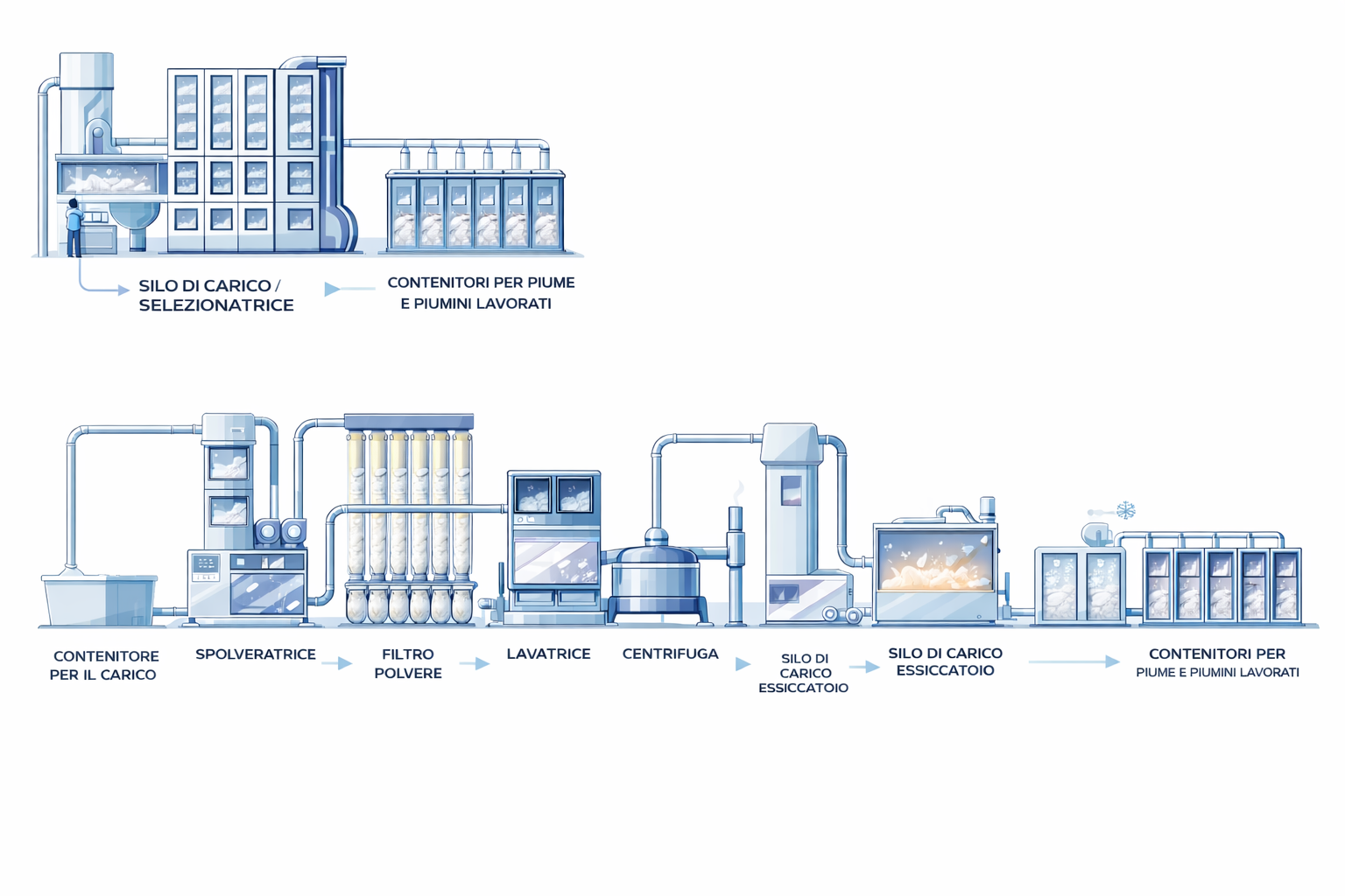 Il ciclo di lavorazione della piuma